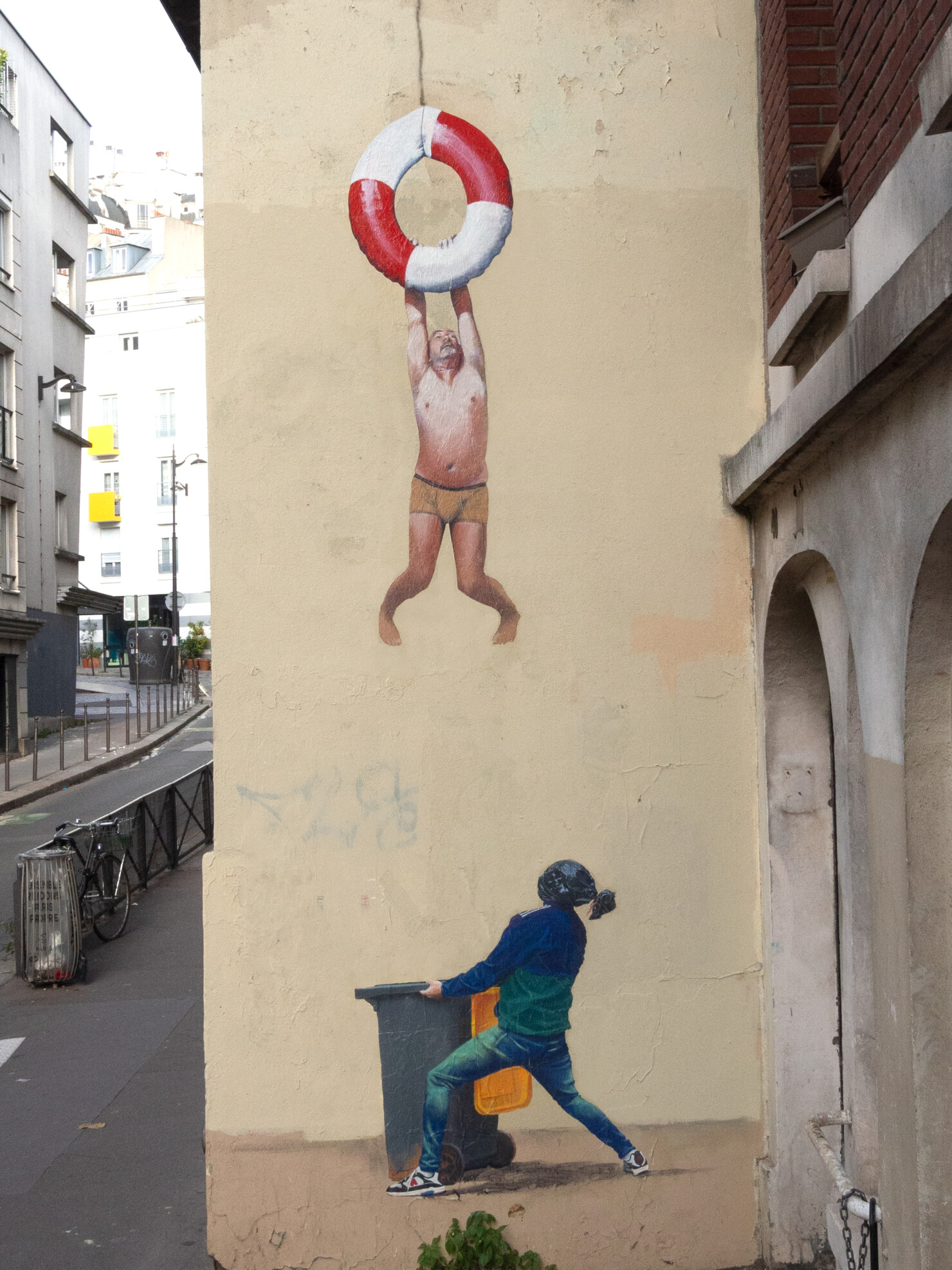 This fully hand painted paste-up is based on the concept of a “salaryman”. In Japanese popular culture, he is a white-collar worker who shows overriding loyalty and commitment to the corporation where he works to the point where he has to participate in after-work leisure activities such as drinking. Sometimes until they are totally drunk in the streets.