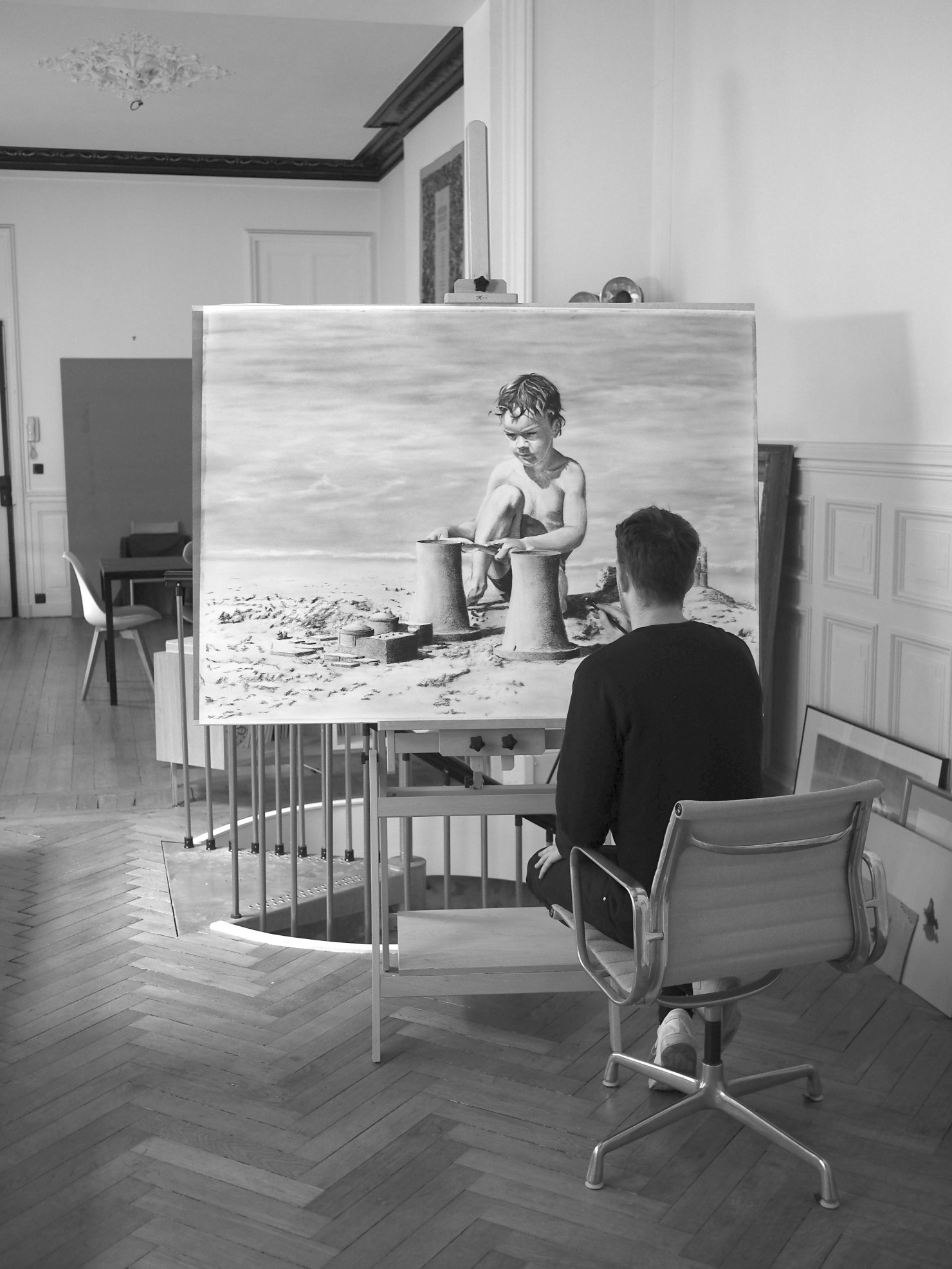 Murmure was initially created for the street, over a decade later it has shifted to a global art project. Paul and Simon’s studio work is now at the core of their art. Known for working around series, the duo focus on a subject that they will dive in and explore sometimes for years. Through black chalk drawings, acrylic paintings, or bronze sculptures, their hyper realistic render mixed with surrealism leave the viewer a great freedom of interpretation, ultimately sharing their vision of the world we live in.
