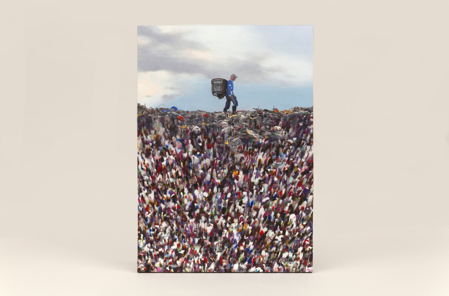 With this image we wanted to show the thickness and numerous layers of shredded plastic that compose this unique material that we use as canvas for our “Background” series.