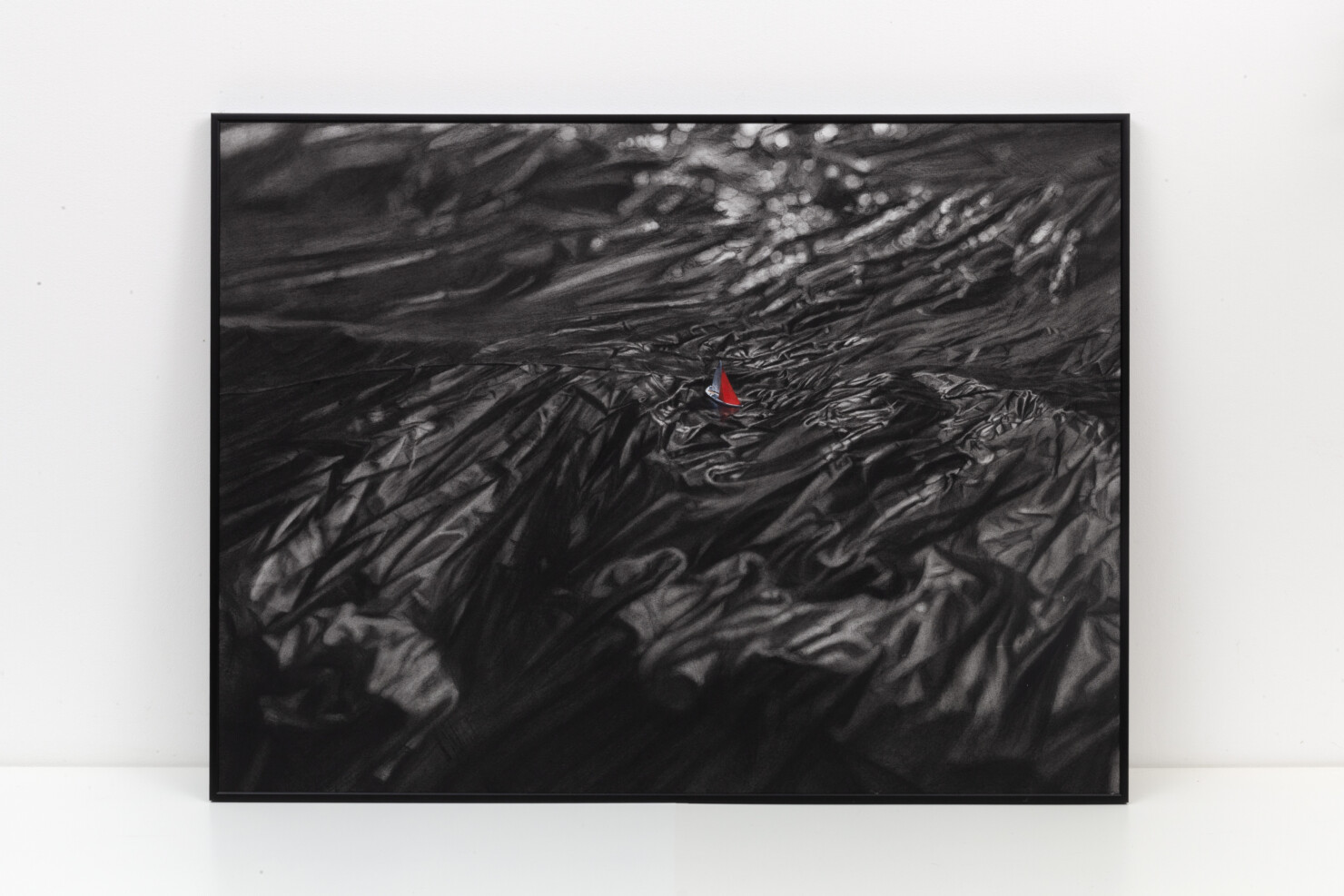 Here the garbage bag seems almost natural, it fills the whole image to emphasize the dramatic situation the world is facing. Each artwork differs in term of light effects and the folds of the plastic, but also with his coloured element. Eye-catching, this element that seems lost in the vastness of the ocean sets the scale of the artwork and gives a different key to understand the meaning behind it.